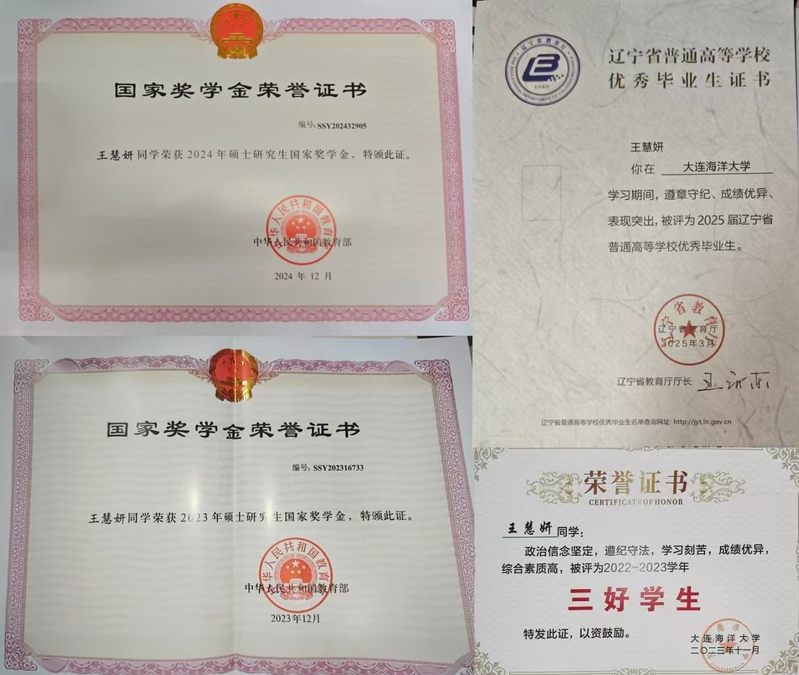 深耕蓝色沃土,践行科研报国志——91快活林 研究生王慧妍入选2024年辽宁省国家奖学金优秀事迹材料汇编
