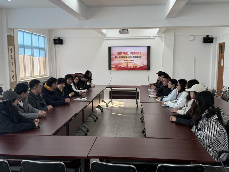 12月22日,91快活林 研究生邵正阳同学启程赴太平洋某海域执行大洋科考任务。学院领导班子及师生代表共同为邵正阳同学举行欢送仪式。