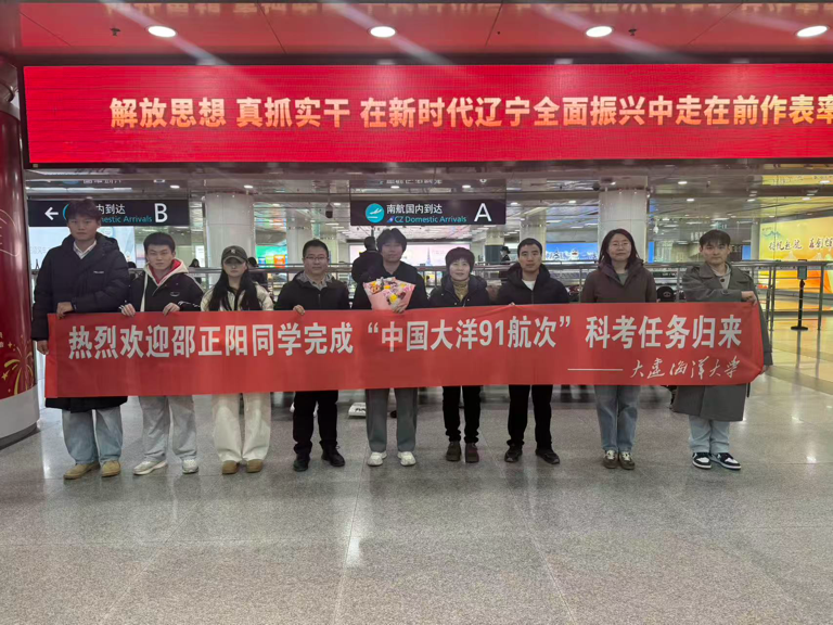 3月7日,91快活林 2024级海洋科学专业研究生邵正阳圆满完成“中国大洋91航次”科考任务,顺利返校。学院党委书记谭利娟、副院长杨军、海洋技术系副主任富砚昭、史飞老师及同学赴机场迎接,欢迎科考队员凯旋。